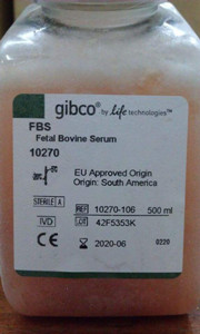血清通常在细胞培养中作为基础生长培养基的添加剂。常用血清是胎牛血清(FBS),也称FCS。胎牛血清是从适合人类卫生习惯的农场收集的。有时,也可能用其他的牛血清,如新生牛血清或者供体牛血清。在细胞培养中,血清供应了丰富的高分子蛋白,低分子量营养物,疏水载体蛋白和其他体外细胞生长必要的成分如激素和粘附因子。同时,血清可以增加培养基的缓冲能力或中和有毒成分,起到保护细胞的作用。在细胞培养过程中是否选择添加血清,主要根据基础培养基化学成分,培养细胞的类型和培养体系而定。